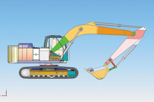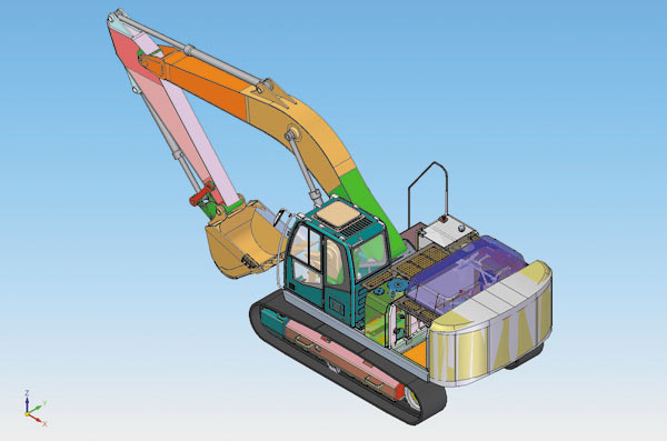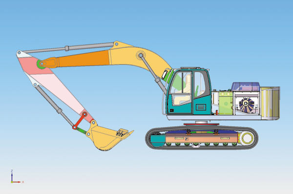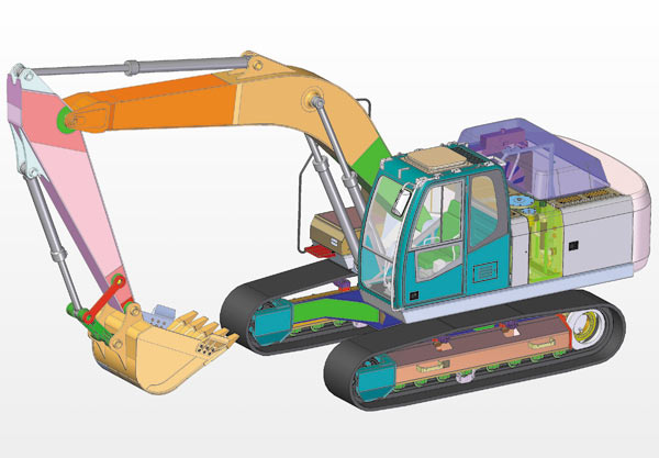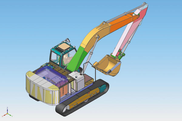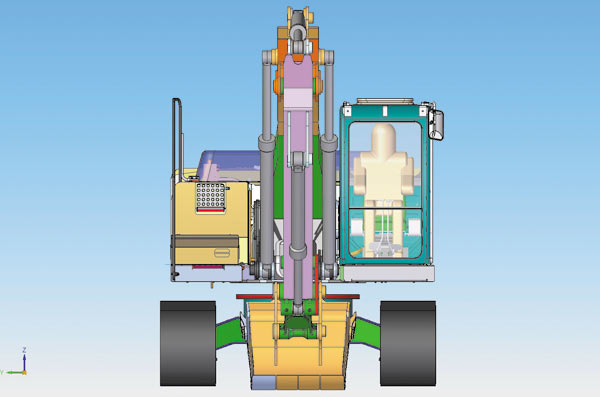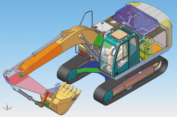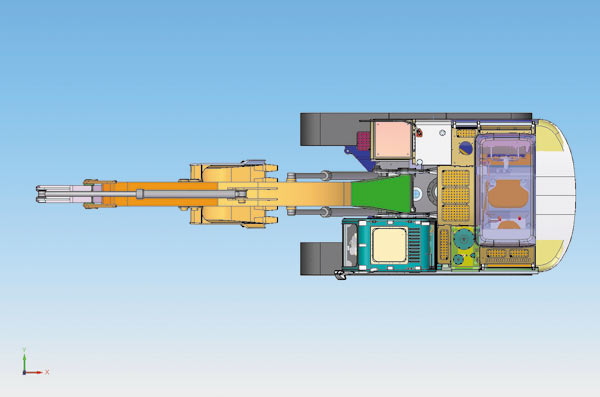 Новый экскаватор целиком создан с помощью CADсистем Solid Edge и NX. Кабина и рама, а также некоторые узлы и детали разрабатывались в системе NX, остальные части — в Solid Edge. Фактически холдинг получил электронный 3Dмакет новой машины с ассоциативными чертежами, который дает возможность быстро вносить модификации в конструкции, создавать различные исполнения и использовать наработки для будущих проектов. 3Dпроектирование на базе NX и Solid Edge позволило серьезно проработать компоновку экскаватора, улучшить конструкцию изделия, а также проанализировать кинематику машины — например оценить, как работает стрела. Всё это дало возможность избежать ошибок при технологической подготовке производства.