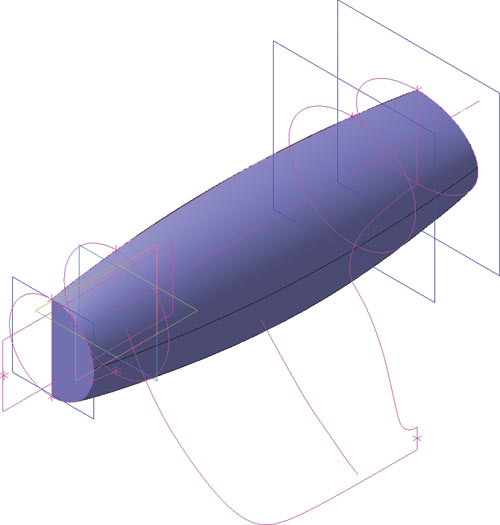 С помощью команды Поверхность по сечениям конструктор выполняет построение корпуса, последовательно указывая его поперечные сечения (рис. 10).