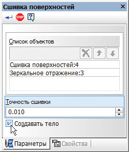 Одновременно в модели происходит важнейшая метаморфоза: она преобразуется в твердое тело. Включение опции Создавать тело при выполнении команды Сшивка поверхностей позволяет заполнить весь внутренний объем поверхностной модели материалом, назначенным для детали (рис. 21).