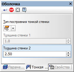 Применяем к модели команду Оболочка. Указываем грань продольного сечения, которая будет исключена из расчетов, при этом к остальным граням добавляется слой материала, образующий оболочку. Это приводит к появлению полости, повторяющей внешнюю форму детали (рис. 25).