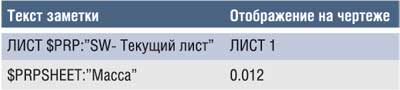 Отображение номера листа. Для отображения текущего номера листа и общего количества листов можно добавить в тело заметки строку: $PRP:”SW-Текущий лист” (табл. 1).