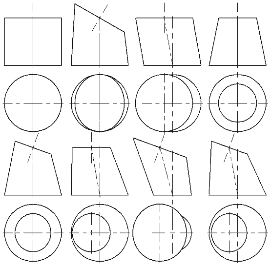 На рис. 1 изображен чертеж элемента, образованного двумя окружностями диаметрами D и d, наклоненными друг к другу в пространстве углами a (угол наклона линии их центров к нижнему основанию) и j (угол наклона верхнего основания к линии центров).