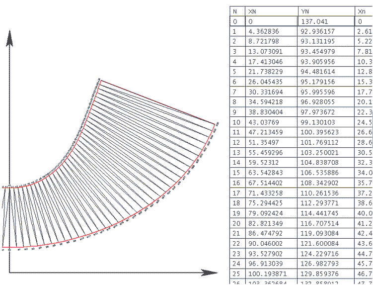 С помощью еще одного полезного инструмента T-FLEX CAD автоматической спецификации создается таблица координат точек контура, считываемых из нанесенных на развертку фрагментов секторов, которая может быть использована для разметки на координатных машинах.