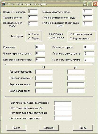 Для того чтобы в полной мере воспользоваться возможностями расчета подземных трубопроводных систем, мы разработали программное средство для расчета характеристик взаимодействия трубы с грунтом — программу ГРУНТ.