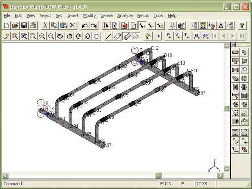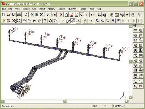 С ее помощью инженеры могут моделировать с большой точностью различные расчетные схемы за считаные минуты, пользуясь при этом информацией других CAD-приложений для проектирования промышленных объектов и анализа напряжений в трубопроводах. Bentley PlantFLOW дает пользователям возможность легко строить сети трубопроводов любой сложности или размеров, рассчитывать давления, температуры и скорости течения жидкости во всей сети для оценки возможных альтернативных вариантов.