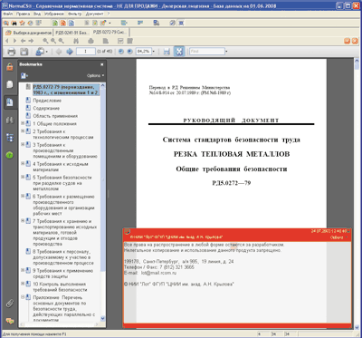 Полнотекстовый электронный фонд нормативных документов судостроения создан НИИ «Лот» на базе официальных изданий документов. С помощью программного обеспечения Adobe Acrobat электронные документы дополнены средствами «навигации», обеспечивающими удобную работу с документом: