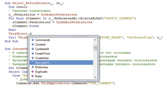 Важным дополнением обновленного редактора программного кода TDMS Developer 4.0 стал уникальный для бестипового языка механизм автодополнения свойств и методов. Редактор самостоятельно определяет возможность включить подсказку, основываясь на программном коде, введенном ранее. Программист избавляется от необходимости каждый раз открывать справочное руководство, чтобы отыскать нужные методы, свойства или константы. Ему достаточно пролистать открывшийся список в поисках близких по смыслу свойств, найти нужное и вставить его в программный код.
