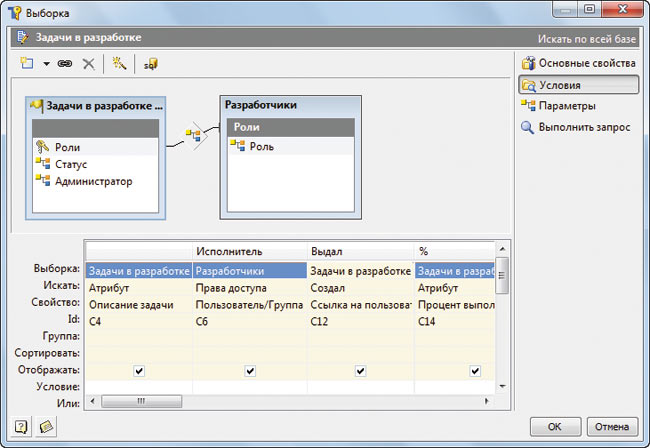 Полученные из построителя запросов выборки могут быть размещены в составе объектов, что расширяет их применение. Подобное использование выборок позволяет избежать излишнего заимствования и хорошо структурирует информацию, представленную в иерархическом виде. Эта возможность весьма активно используется во всех действующих конфигурациях, построенных на платформе TDMS.