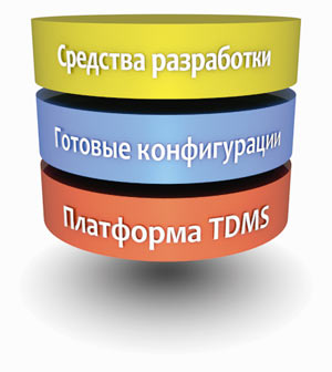 - специализированных настроек (конфигураций) платформы, состоящих из метаданных и открытого программного кода, обрабатываемых средой TDMS на рабочем месте пользователя. Именно конфигурации определяют набор возможностей системы, ее предметную направленность и, в конечном счете, стоимость владения и приносимую прибыль;