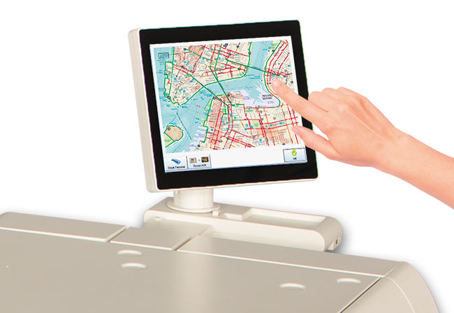 Печать с сенсорного экрана KIP исключает необходимость использования дополнительного компьютерного оборудования при печати со съемных накопителей USB и подключенных сетевых дисков |