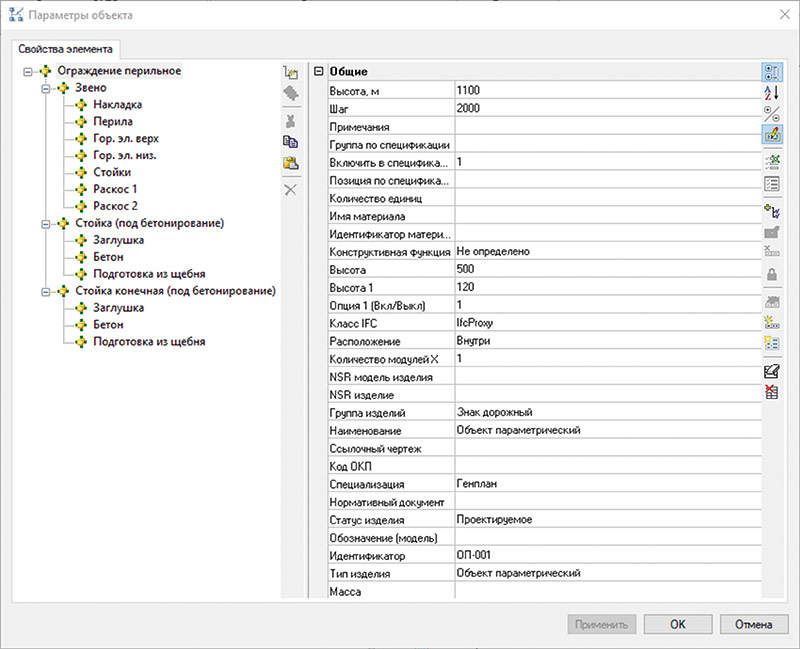 После размещения секций ограждения необходимо использовать одну хитрость: следует перестроить и обновить параметрические объекты, так как программное изменение полей параметрического объекта не ведет к обновлению его графики. В отличие от ручного изменения параметров в форме nanoCAD BIM Строительство (конфигурация «Конструкции»), где после нажатия кнопки ОК в окне Параметры объекта происходит принудительное перестроение графики, в этом случае следует вызвать команду urs_remove_sys_params для обновления всей сцены.